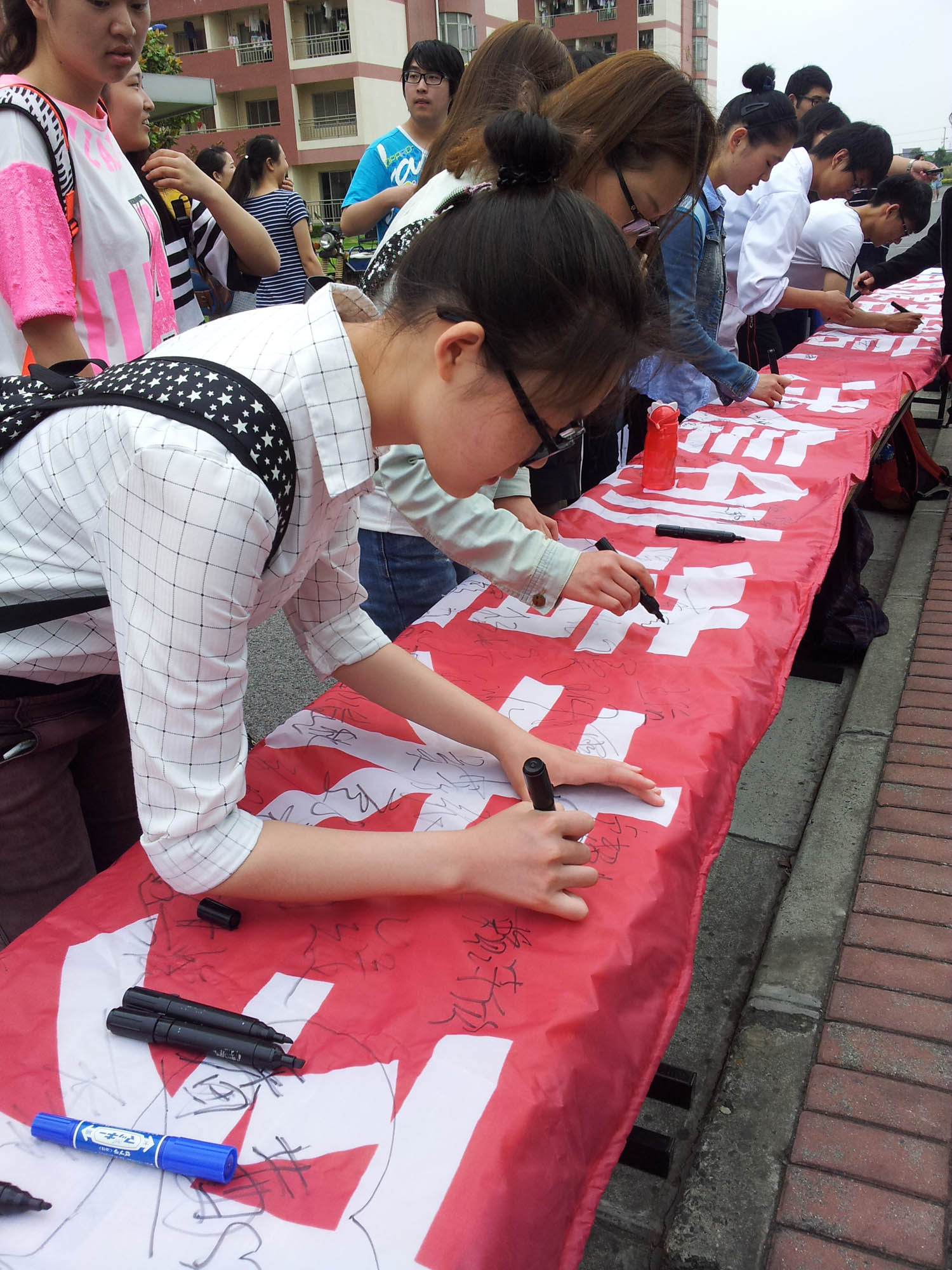 诚信是中华民族的传统美德,也是社会主义核心价值观的重要内容,更是广大学生立身为人、成长成才的必备品质。5月27日中午,由浦东校区学生工作部门组织的2015年学生“诚信教育月”主题活动之系列活动——诚信签名活动在生活园区主干道顺利举行。活动吸引了全校中、高职学生的积极参与。