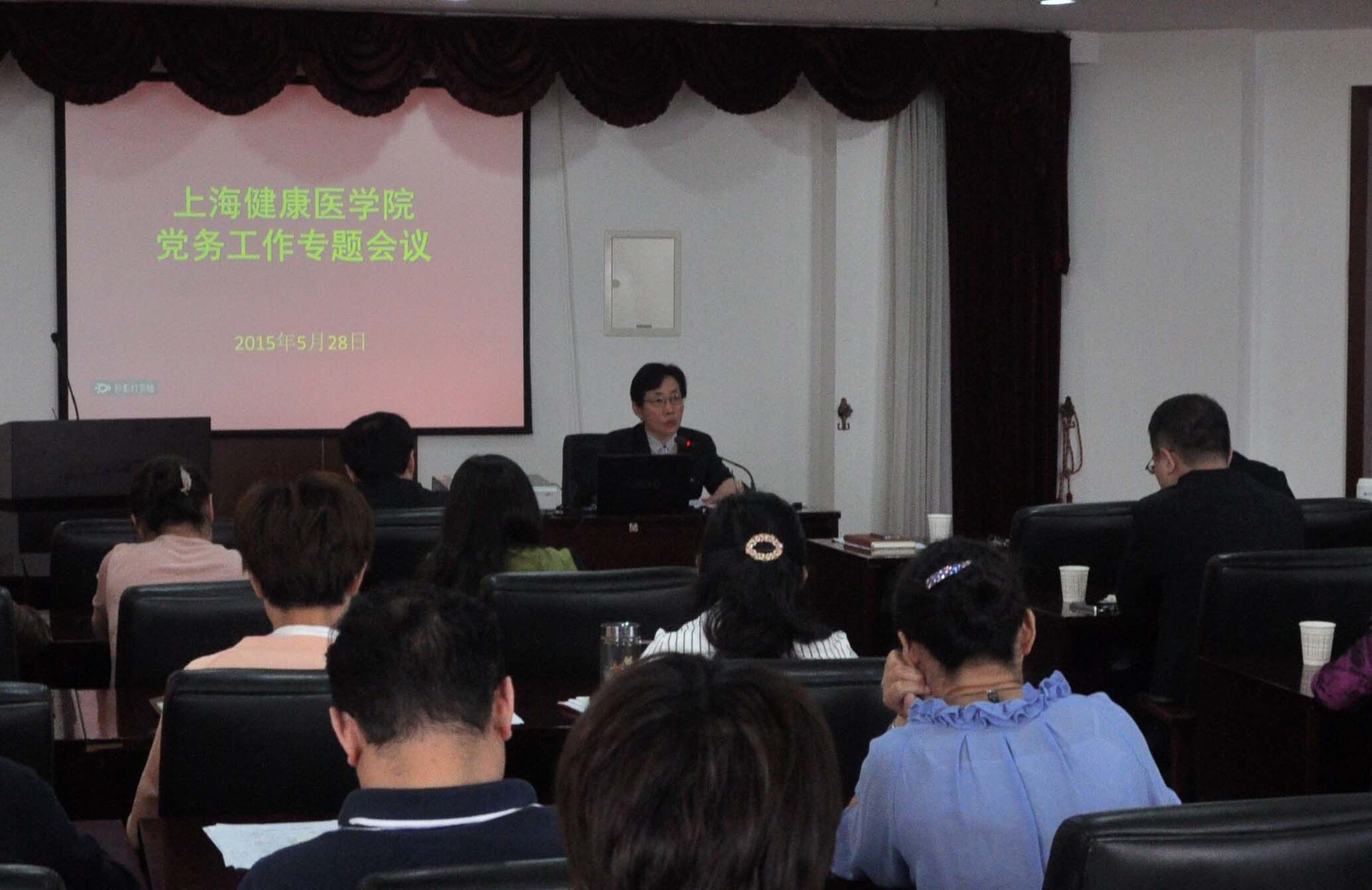 5月28日,上海健康医学院召开党务工作会议,会议由纪委书记李明磊主持,三校区原党务部门和基层党组织负责人参加。校党委书记郑沈芳作重要讲话,副校长曹蓉蓉、唐红梅、于莹分别介绍了三校区原党组织及工作情况。