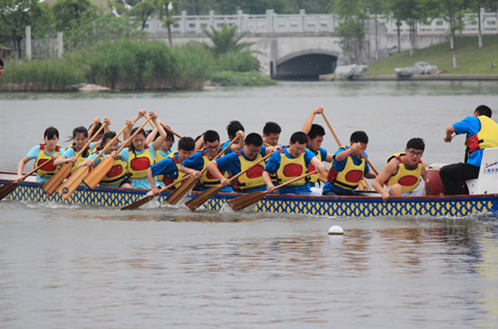 比赛正式开始,裁判长一声令下,条条龙舟如蛟龙出海,奋勇争先,“嗖嗖嗖”地向终点划去。清脆的锣鼓声,激情的呐喊声,有力的吆喝声同时响成一片。船上的运动员们奋起划桨,浪花飞溅,你追我赶,力争上游的劲头儿十足。河岸两侧,人头攒动,群情激昂,欢声震天。我校参赛队员面对强大的竞争对手毫不畏惧,齐心协力,挥桨振臂,力驱龙舟迎浪前行,最终获得了本届龙舟赛前五的好成绩。