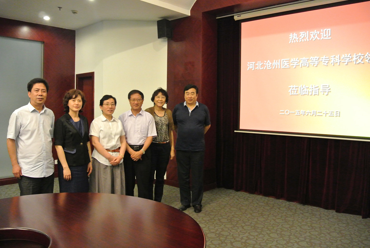 6月26日,河北沧州医学高等专科学校党委书记刘健、副校长张中兴、评估办主任陈勇等一行三人到我校进行考察交流。