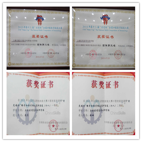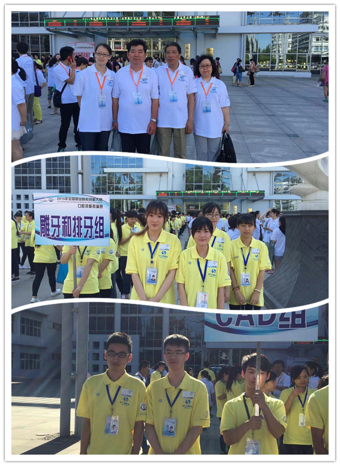 7月4日,2015年全国职业院校技能大赛(表演赛)——中华职业教育社首届“黄炎培杯”职业技能(口腔技能)大赛暨第十三届“日进杯”全国技能大赛在天津拉开帷幕。此次比赛共有台湾及大陆19个省市自治区,51所院校,总计165名选手参加。我校共6位学生参赛,其中高职、中职各2位选手参加了牙体雕刻与全口排牙比赛,高职2位选手参加了CAD设计比赛。最终,我校选手捷报频传,获得多个奖项。作为辅导老师,我校徐晶心老师、行业一线技术大师周企文老师和戴文安老师也分别获得了“优秀指导老师”的称号。