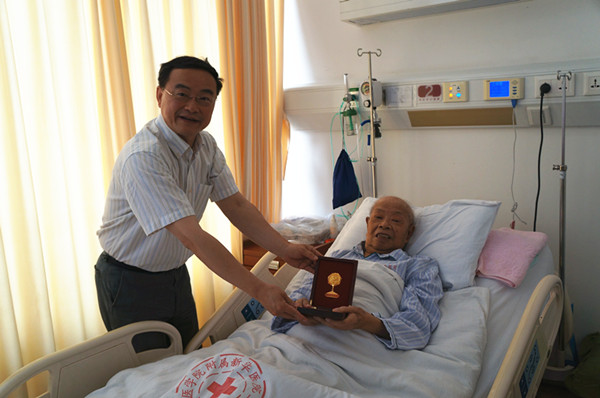 黄钢校长详细询问了王寿亮同志的生活、身体和治疗情况,嘱托医院医务人员给予精心治疗,并送上了由中共中央、国务院、中央军委颁发的中国人民抗日战争胜利70周年纪念章和慰问金,对他为我国民族解放事业、社会主义建设和学校发展建设做出的贡献表示由衷敬意和衷心感谢。同时希望王寿亮同志继续为学校的发展与建设建言献策,祝愿他健康长寿、幸福快乐。