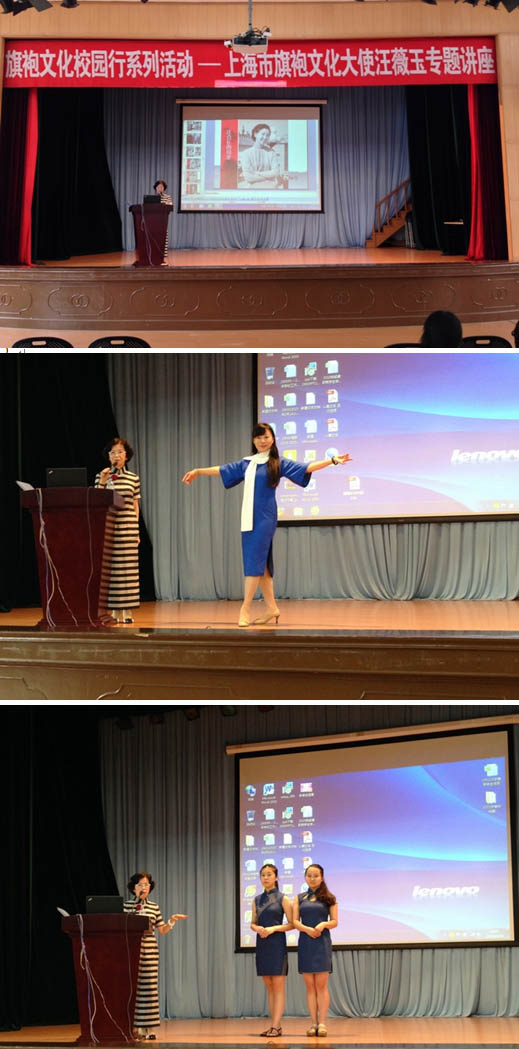 6月18日15:30,上海健康医学院徐汇校区大礼堂进行了一场“旗袍文化校园行----旗袍的演变”的专题讲座,主讲人为上海市旗袍文化大使、上海旗袍沙龙创始人、东方讲坛讲师汪薇玉老师。