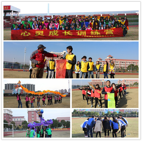 心理素质拓展活动共分为“破冰之旅”和“团队竞赛”两部分。“破冰之旅”中,教练们组织了“松鼠与大树”的游戏,随后将心协成员分成了“红”、“黄”、“蓝”、“绿”、“紫”五个小组。通过让大家为自己的团队取队名、编队歌、设计队形和logo等方式让成员们互相了解。“团队竞赛”部分共分为两个环节。第一环节有6个小游戏组成,分别是“集合击球”、“移行换位”、“球到渠成”、“齐头并进”、“数字迷宫”和“我们的团队是最棒的”。这些环节要求全队通过合作完成任务,调动了同学们的积极性,让大家意识到在团队中每个人都很重要。第二个环节是“舞龙”,队员们在队长的带领下用铁丝、布、彩纸等材料亲手制作龙,并相互配合进行舞龙展示。活动培养了团队默契,大家发挥特长,贡献了精彩的舞龙表演。