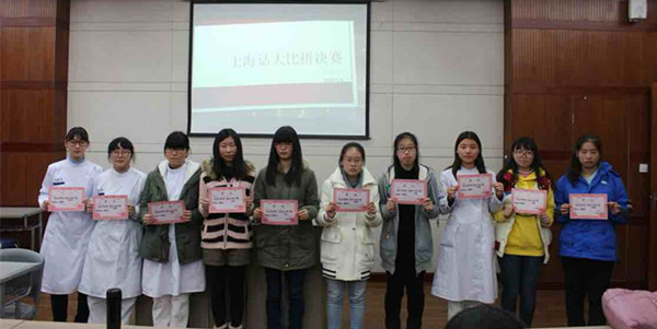 担任本次比赛的评委老师有护理学院辅导员庞海荣老师、朱吟春老师、上海话社社长曹正阳。经过了初赛的预热,决赛于9日下午举行。在第一个环节“沪语知多少”的闭卷答题环节,选手们答题流畅,神态自如。在其后的“沪语自我介绍”中,选手们发音标准,偶尔因为紧张而冒出几句洋泾浜的话语,引得观众和评委阵阵笑声。第三环节“趣味诗词翻译”将比赛气氛推向高潮,看着选手们在台上手足无措的样子,评委们忍不住帮助他们。最后的“沪语配配看”这个环节考验的是选手们的临场应变能力。虽然选手们绞尽脑汁,希望配出最接近原版的语气,但当这些熟悉的影视作品被翻译成方言后,却是笑点满满。最后王子玲荣获一等奖,成雅琳、苏亦乐荣获二等奖,成文怡、桂家悦、忻嘉芸荣获三等奖。