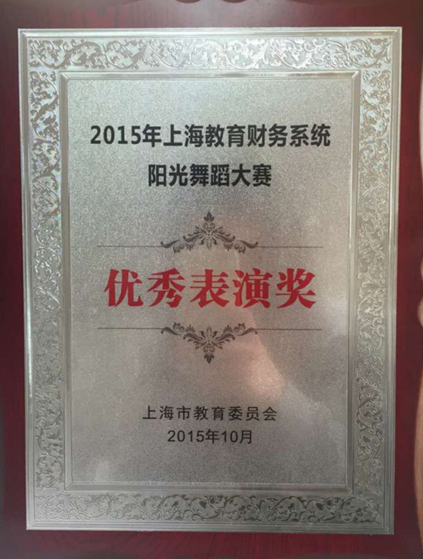 为充分展示上海教育系统财务工作者立足本职、快乐生活的精神面貌,增进财务工作者之间的友谊和交流,进一步丰富职工文化生活,上海市教委财务处和上海教育会计协会联合举办2015年上海财务系统“阳光舞蹈”大赛。我校财务处工作人员根据比赛精神,积极组织、精心编排、踊跃参赛,历经为期一个月的艰苦而紧张的集训,于10月31日参加了在同济大学大礼堂举行的参加大赛。在与来自32所高校的财务部门参赛队伍激烈角逐后,最终荣获“优秀表演奖”。