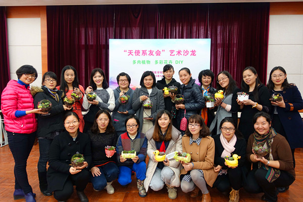 12月8日,护理学院在徐汇校区职工活动中心举办了一场别具特色的“天使系友会”多肉盆栽DIY创意沙龙。活动不仅邀请了一直支持护理学院学生管理工作的行业专家和优秀毕业生,护理学院的老师和同学们也都积极报名参与。师生们在学习、观赏和种植多肉植物过程中增进了解与互动,享受了园艺带给我们的美好感受。
