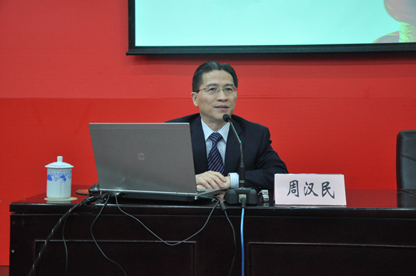 会上,周汉民老师的报告旁征博引、深入浅出、幽默风雅、内容详实,通过对美国、英国、法国、日本等世界主要国家的宪法类型的比较分析,详细解读了我国宪法作为国家的根本大法,它的历史沿革、基本原则、根本制度及基本制度等多方面内容。并在报告的最后,重点诠释了依法治国——建设社会主义法治国家的重要意义以及中国法治建设的两大标准。周汉民还简明扼要地介绍了全国人大或其常委会通过法律、国务院行政规章、地方人大或其常委会通过法律、特别行政区法、经济特区法、我国所参加或缔结的国际条约公约等相关内容。