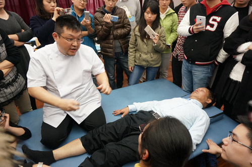 2015年12月23至27日,康复学院联合日本大阪滋庆学园举办的中枢神经损伤物理治疗短期培训班在徐汇校区举行。此次培训班为期5天,由大阪滋庆学园选派临床资深物理治疗师稻村一浩和羽田晋也先生作授课专家。来自华东、华山等17家医院的康复治疗师30余人,及我校部分康复专业临床实习的学生参加了培训。唐红梅副校长出席了开班仪式并致辞。