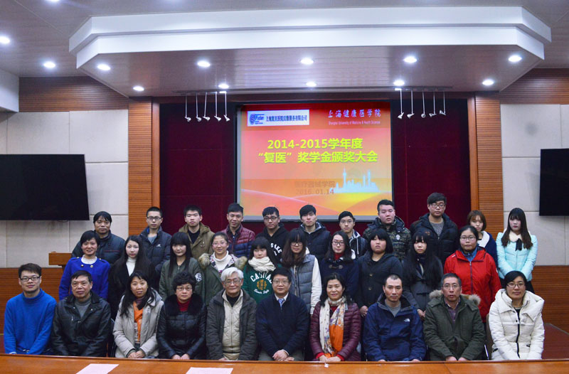 2016年1月14日下午,医疗器械学院在徐汇校区报告厅举行2014-2015学年度“复医”奖学金颁奖大会。上海复旦医院后勤服务有限公司董事长方强,人力资源总监、培训学院院长徐元钊,工程事业部总经理杨爱华等嘉宾出席颁奖仪式;医疗器械学院党总支领导、机电设备维修与管理专业班导师、辅导员及全体大一至大三共98名学生参加了此次大会。