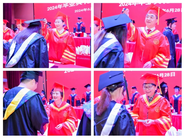 拨穗正冠,毕业礼成。学位授予仪式上,校、院领导及附属医院领导为2024届毕业生一一拨正流苏,学位帽上的帽穗从右到左,象征他们从上海健康医学院毕业,踏上新的人生征途。