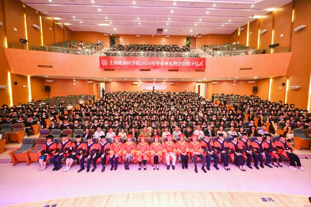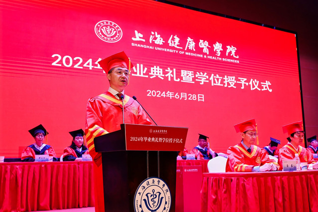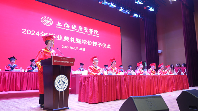 奋楫笃行向未来,挺膺担当护健康。6月28日,上海健康医学院2024年毕业典礼暨学位授予仪式在东苑800人报告厅隆重举行。满载收获与喜悦,3225名健康学子从健康园启程,在亲人、师长和好友的祝福与期盼中,踏上人生新征程。校党委书记郭永瑾,党委副书记、校长吴韬,党委副书记、副校长唐红梅,党委副书记于莹,党委副书记、纪委书记高红,副校长马耀良,副校长汤磊,各附属医院院长,各学院院长以及各职能部门、教学部负责人,2024届毕业生代表齐聚一堂,共同见证这一隆重时刻。广大师生、校友、家长亦通过现场直播同步观看典礼盛况。典礼仪式由唐红梅主持。