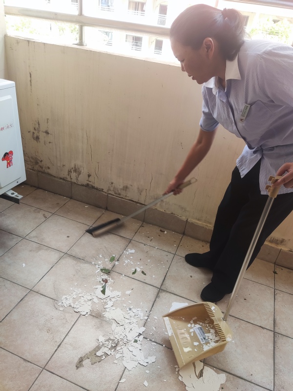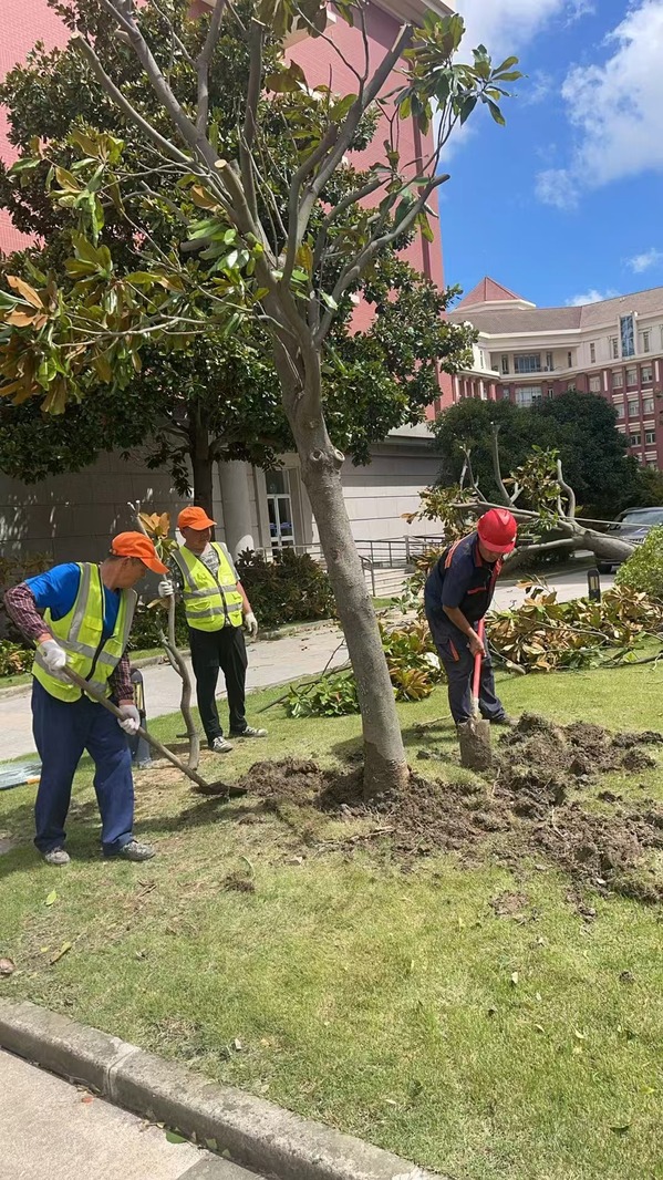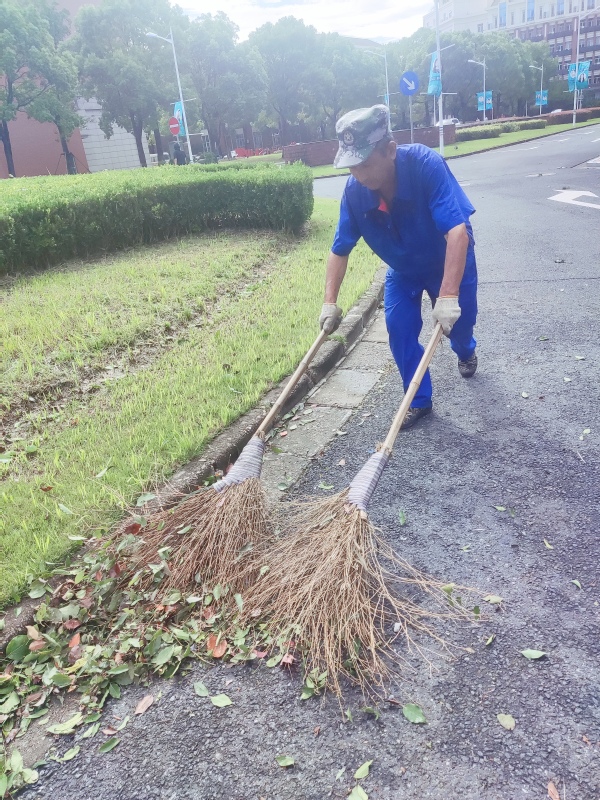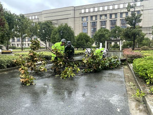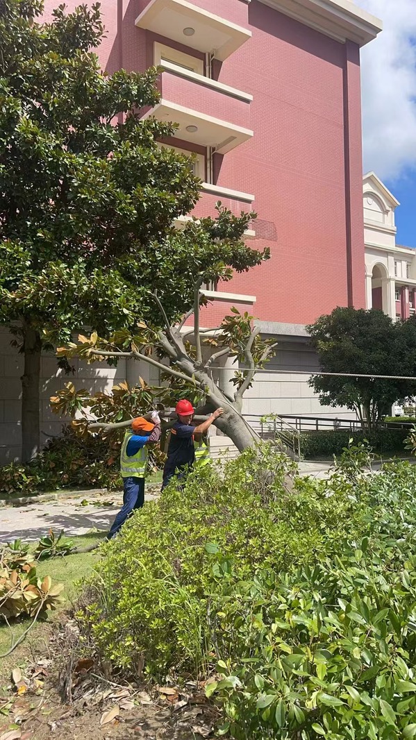 后勤物业员工继续加班处理台风遗留的环境问题