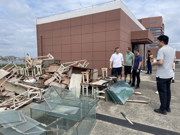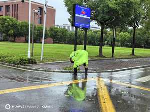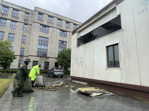 9月16日,台风“贝碧嘉”在上海登陆。校党委书记郭永瑾高度重视,亲自指挥、亲自部署,她要求全校各部门、各学院及实验室要守好“责任田”,对受到影响,出现破坏的区域要及时警戒、及时修复,全力保障在校师生的安全。上午11时,校长吴韬顶着台风,冒着暴雨,亲临一线,靠前指挥,带领值守人员先后巡视三个苑区。吴韬校长现场办公,针对树木倒地、高层外立面脱落等安全隐患,他布置有关部门清障清洁,并要求及时做好警示和修复工作,确保节后恢复正常校园秩序和迎新工作的顺利进行。