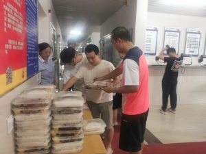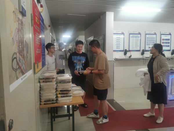 临近中午,为尽量减少学生外出,避免发生危险,学校后勤与食堂人员冒雨为在校学生送餐至公寓楼,吴韬校长主动作为其中一员为学生亲自送上一份份免费餐,学生们连声说,老师们辛苦了。下午5时学生处带领辅导员先后对三苑区进行安全检查,叮嘱师生精神不要松懈,要提醒学生注意安全,保持沟通畅通。