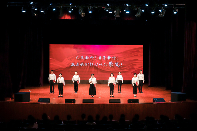 教师是兴教之源,立教之本。近年来,在学校党委高度重视下,校工会、教务处、教师发展中心、人事处及教师工作部的大力支持下,各学院积极备战上海高校青年教师教学竞赛,我校教师在比赛中屡获佳绩。获奖选手代表及优秀组织奖代表教师带来一首情景朗诵《爱教乐教》,展现了满怀青春梦想,致力于书写教书育人的光辉篇章。