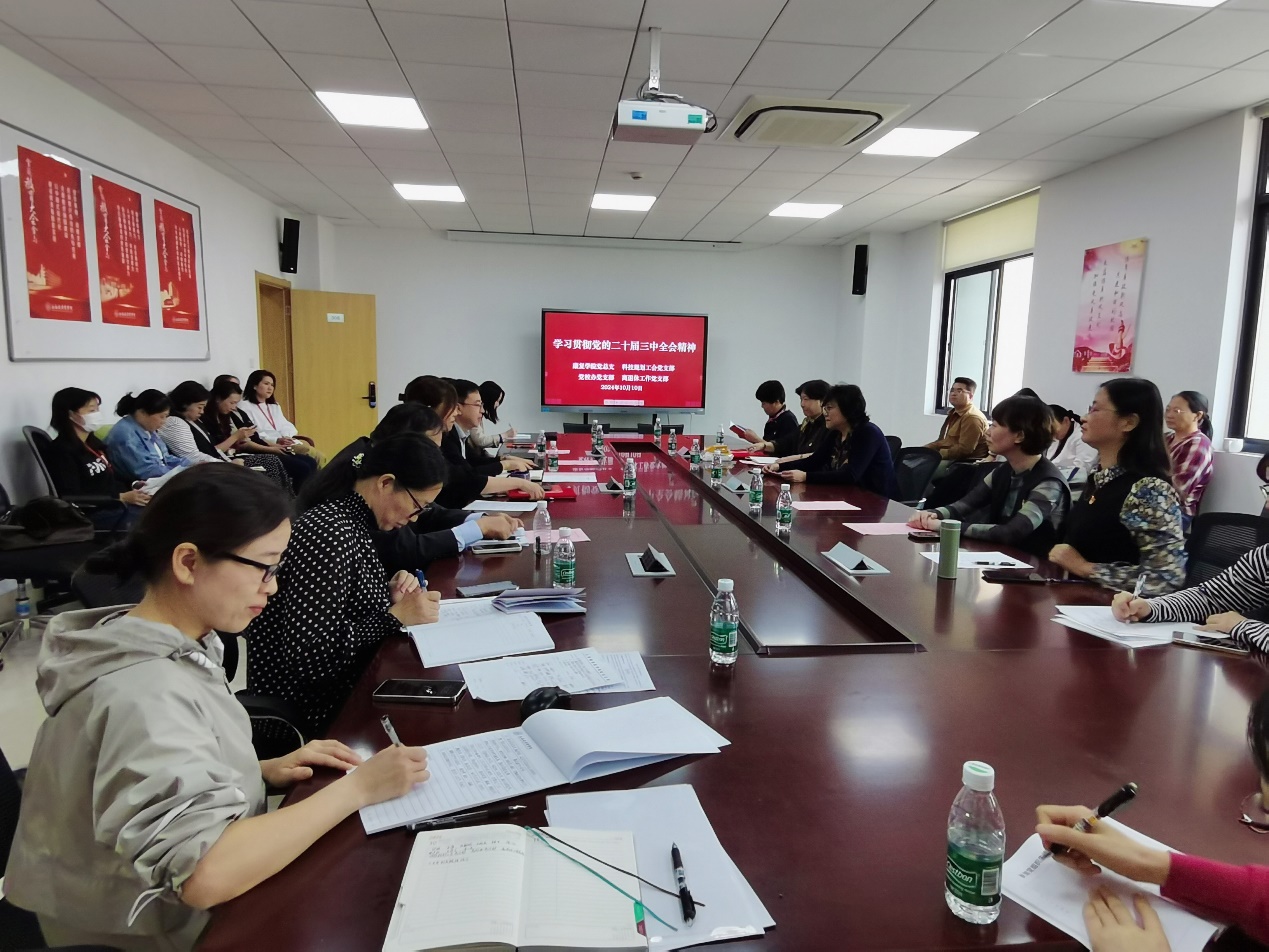 10月10日中午,康复学院党总支、科技规划工会党支部、党校办党支部、离退休工作党支部在康复学院308会议室开展了党的二十届三中全会精神联组学习,校党委副书记于莹与会交流领学,康复学院党总支书记王红主持会议。