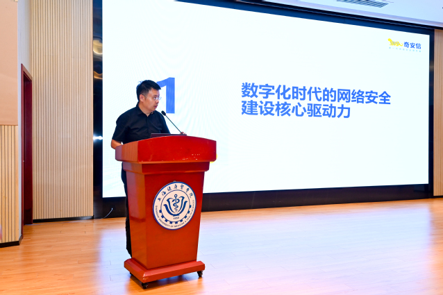 在接下来的报告环节,中国移动通信集团上海有限公司、支付宝公司和奇安信网络安全公司进行了主题分享。中国移动通信集团公司通过案例展示了其在智慧校园设计、规划和建设上的实力和经验,对高校数字化转型进行深入思考。支付宝公司介绍了数字身份认证、碰一下支付及校园服务数字化等能力,为全校师生带来了更加便捷高效的校园生活体验。奇安信网络安全公司重点介绍了如何利用人工智能、大数据等先进技术保障教育数字化转型过程中的网络安全问题,为学校的数字化转型提供有力的安全保障。