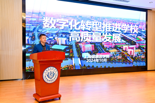 吴韬首先致欢迎辞对出席会议的领导和嘉宾表示热烈欢迎和诚挚感谢。他表示,上海健康医学院积极实施教育数字化战略,将数字化转型作为学校教育改革和高质量发展的核心。在教学方面,积极打造智慧教学“数治”新生态。构建智能化教学管理系统,推动线上线下相结合的教学模式,提升教育教学的互动性和有效性,努力推进教学资源的数字化和智能化。获得上海市“5G+智慧教育”应用试点优秀项目。在科研方面,积极打造主动健康“数治”新模式。依托数字化平台,利用物联网、区块链、人工智能等先进技术打造主动健康服务新模式,推动“新医科”和“新工科”等科研创新能力不断提升。获批成为全国“5G+智慧医疗”示范标杆。在服务方面,积极打造管理平台“数治”新阵地。通过智能化管理系统,提升校园智能治理水平,为师生提供便捷高效的服务,创新的数字化审计监管和内控管理模式在全市高校中得到推广。