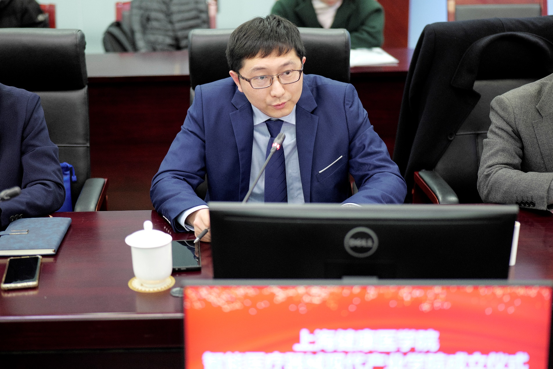 孟祥国代表学校致辞,并对合作单位的大力支持表示感谢。他指出,智能医疗器械现代产业学院作为我校首批成立的现代产业学院之一,希望能够积极地开展办学和育人模式的创新和实践,发挥产教融合在人才培养、创新创业、课程建设、教材建设、成果转化以及国际合作、师资培养等方面的优势。智能医疗器械现代产业学院的成立是新的起点,也是一份沉甸甸的责任。