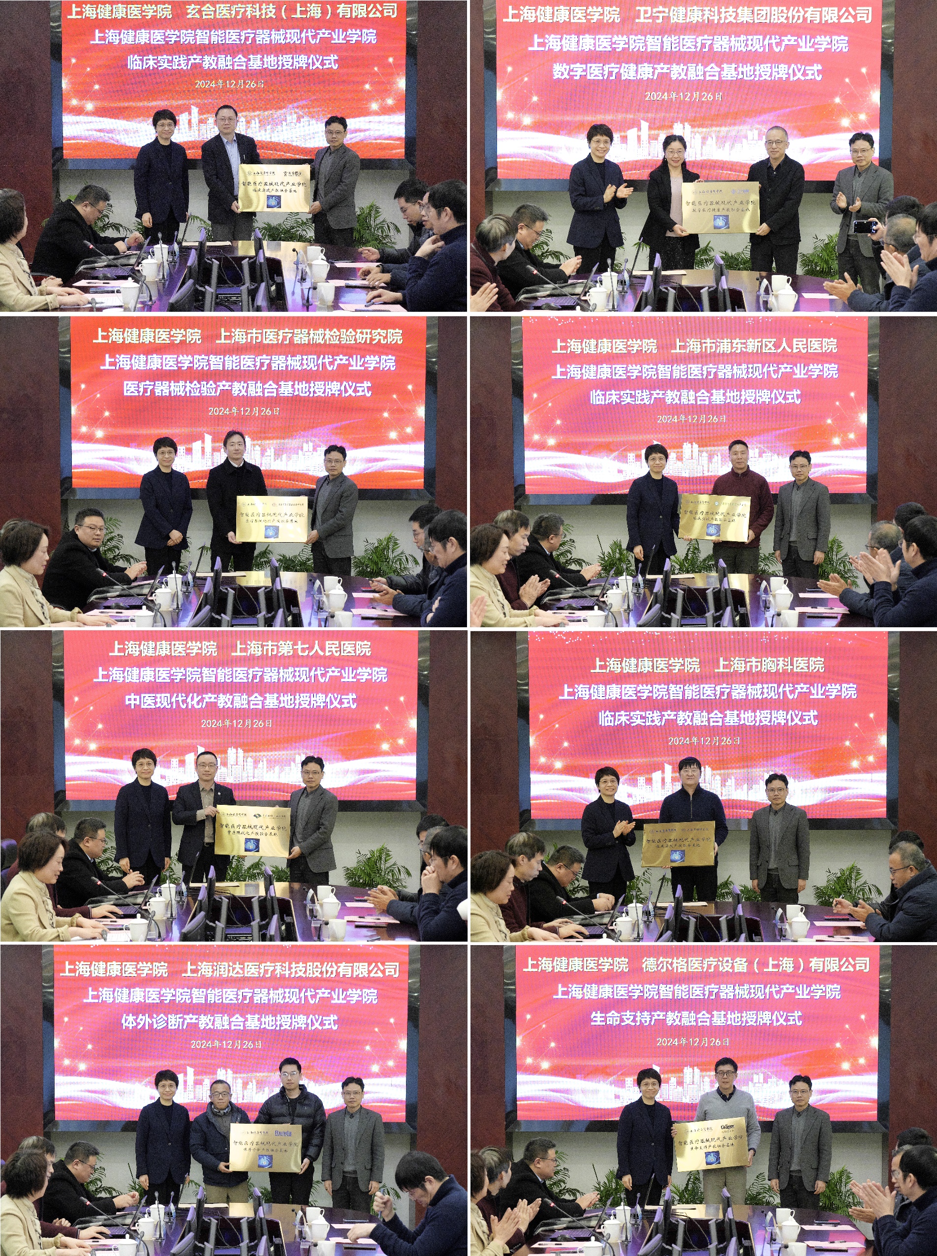 随后,举行了上海健康医学院智能医疗器械现代产业学院体外诊断、生命支持、临床实践、数字医疗健康、医疗器械检验、中医现代化5类产教融合基地授牌仪式,标志着智能医疗器械现代产业学院的正式成立。