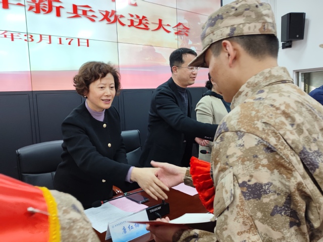 唐红梅代表学校党委向全体新兵战士表示热烈祝贺,向深明大义、倾情奉献的军属致以崇高敬意!她表示,今年是中国人民抗日战争暨世界反法西斯战争胜利80周年,正值深化国防和军队改革的关键之年,站在新的历史方位,勉励新兵们:一要永葆“清澈的爱,只为中国”的赤子情怀;二要锤炼“一不怕苦、二不怕死”的战斗精神,在实战化训练中磨砺血性胆气;三要践行“救死扶伤、大爱无疆”的医者初心。戎装加身踏征程,祝新兵同志们在部队不断取得进步,为国防事业建功立业,在军队的广阔天地里,尽抒报国志,大展报国行!