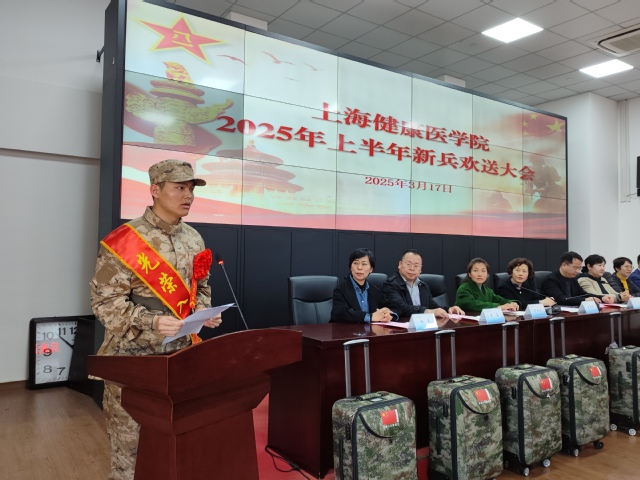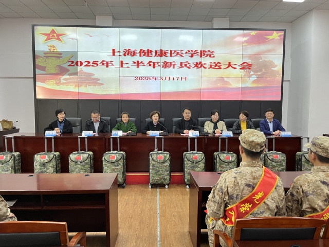 3月17日下午,上海健康医学院2025年上半年新兵欢送会在杨浦役前教育基地隆重举行。校党委副书记、副校长唐红梅、学工部(武装部)部长童清、各学院党总支副书记、武装专员及辅导员、部分新兵家长代表、2025年被批准入伍的10名大学生男兵等参加。会议由学工部(武装部)副部长罗瑾琰主持。