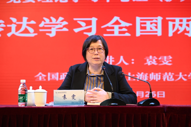 全国政协委员、上海师范大学校长袁雯教授应邀传达2025 年全国两会精神。袁雯教授从亲历者和参与者的角度,全面介绍了全国两会的总体情况,包括政府工作报告、政协常委会工作报告、“两院”工作报告及代表履职经历和提案等内容,重点传达两会期间习近平总书记在看望参加政协会议的民盟民进教育界委员联组会议上的重要讲话精神和参加江苏代表团审议时的重要讲话精神,分享了对教育、科技、人才发展的见解,内容丰富、贴近实际、催人奋进。