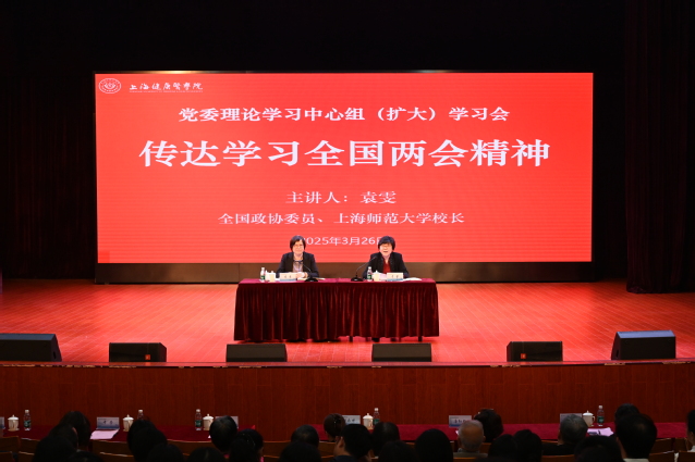 3月26日下午,上海健康医学院举行党委理论学习中心组(扩大)学习会暨2025年党校培训班第一课,传达学习今年全国两会精神。校党委副书记于莹主持会议并作总结讲话。