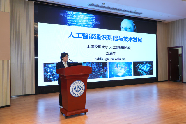 下午,上海交通大学人工智能研究院刘满华教授作题为《人工智能通识基础与技术发展》的专题培训。培训会由教师教学发展中心主任、教务处处长王莉主持,学校近200名专任教师共同参与学习。会前,汤磊副校长与刘满华教授就人工智能赋能教师教学进行了交流。