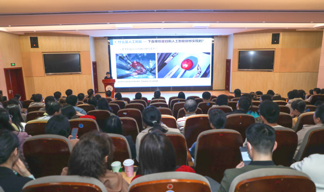 培训会上,刘满华教授首先通过生动而丰富的案例引入人工智能的定义,又以“三度沉浮”详细介绍了人工智能简史,并且依次从机器学习、强化学习、计算机视觉、语义分割、姿态估计、自然语言处理及智能机器人等方面讲解了人工智能的分类,然后从基础层、技术层和应用层三个方面阐述了人工智能技术的发展。最后,她以其研究团队《基于多模态MRI的脑肿瘤分割和基因分型》和《基于多模态磁共振影像的脑龄预测》两个科研项目为例,详细讲解了项目的研究背景、研究目标、研究内容和结果分析。报告内容涵盖了人工智能的核心技术、医疗应用以及前沿探索,为教师们带来了一场关于科技未来的深度思考。