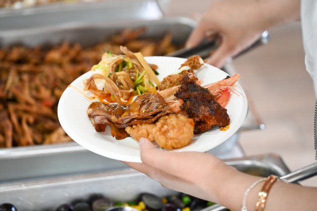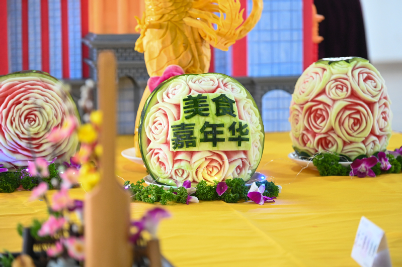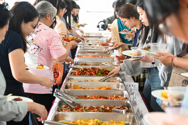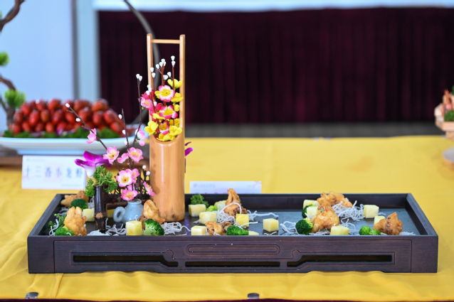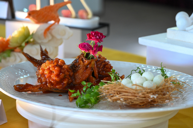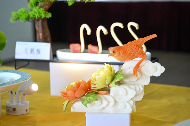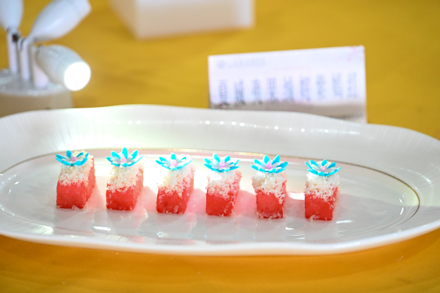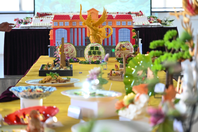 本次美食嘉年华汇聚了200余道佳肴,美食品鉴区以“五育”为脉络打造,将育人理念融入美食创新。川香辣子鸡、新疆椒麻鸡、五谷丰登等地方特色美食组成德育区,以味传情,全员育人,感悟精益求精的劳动精神、工匠精神。银耳羹搭配沙姜焗鸡翅、三色玉子豆腐等构成智育区,聚焦营养均衡,诠释健康饮食智慧;体育区主打高蛋白轻食,黑椒牛仔骨、炭火烤羊排与西芹腰果、蒜香仔排相映成趣,倡导运动活力;美育区以创意菜诠释艺术灵感,国潮醒狮包还原非遗技艺,分子料理“夏威夷果绒姹紫嫣红”惊艳登场;引得师生驻足拍照;劳育区聚焦传统烹饪,卤水拼盘、虎皮凤爪与苦瓜镶鸡茸、玉米葡萄等菜品,展现劳动教育的烟火气。