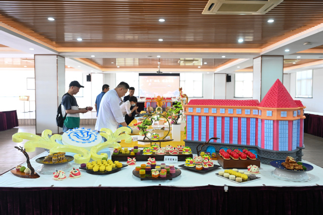 特别引人注目的是以北苑2号楼启明楼(教学楼)为原型制作的泡沫模型展台。这座全手工雕刻的建筑模型,以其精湛的工艺和细腻的细节,生动再现了校园地标的风采,让师生在品味美食的同时,感受浓厚的校园文化底蕴。