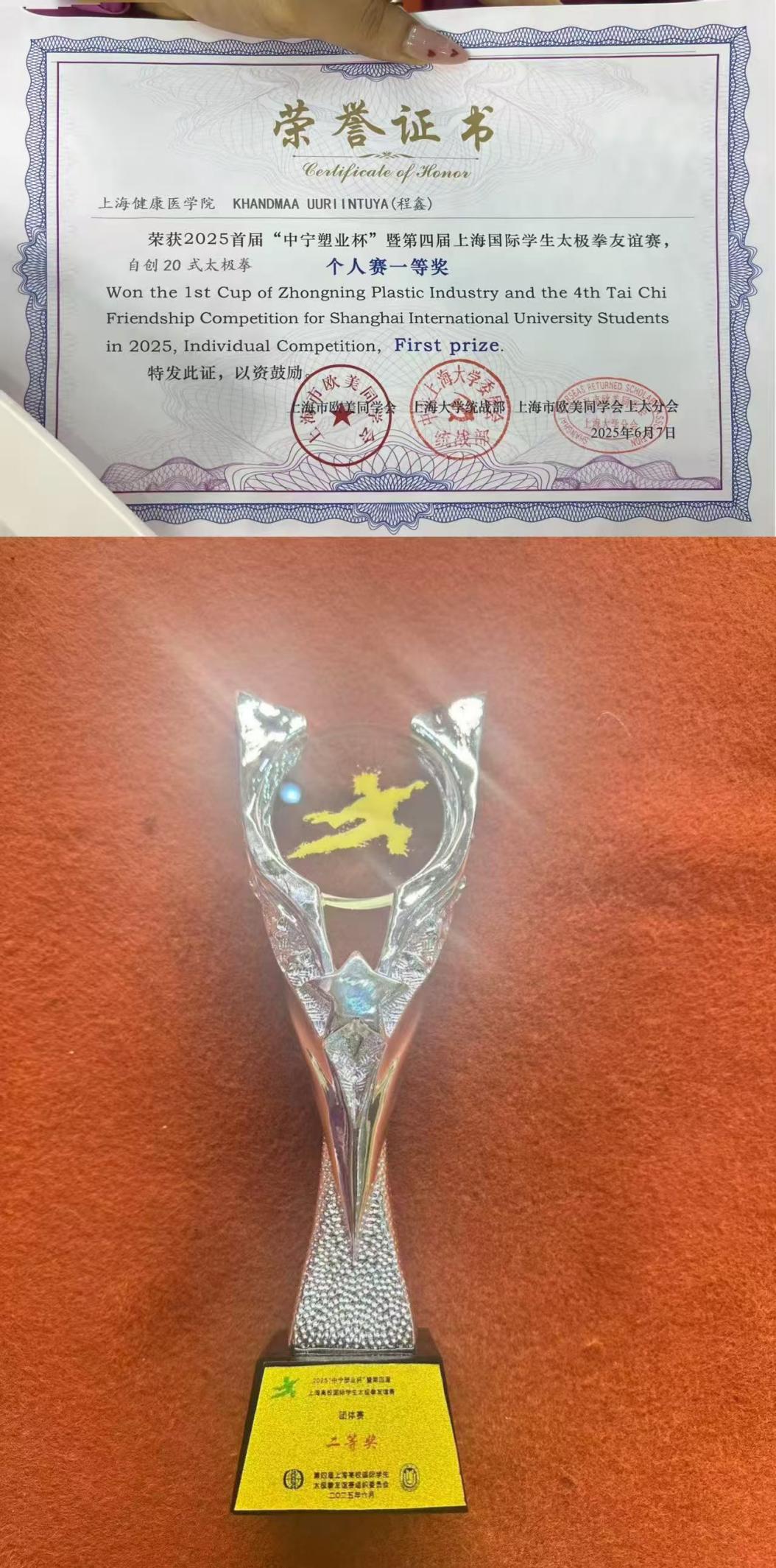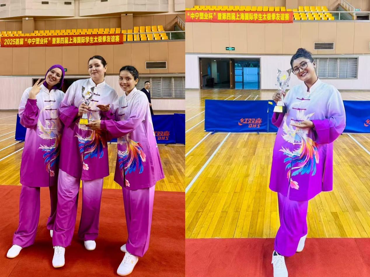 功夫不负有心人。我校代表队凭借默契配合与扎实功底,荣获24式太极拳团体赛二等奖。来自蒙古的程鑫同学更以动作舒展大方、刚柔并济的精彩表现,勇夺女子自创20式太极拳个人赛一等奖,赢得评委与观众的一致赞誉。