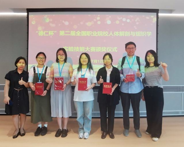 2025年7月10日-14日,我校学子在由基础医学院杨玲、刘丽老师带队指导下,在辽宁本溪市参加“第二届全国职业院校人体解剖与组织胚胎学实验技能大赛”本科组决赛,斩获系统解剖学赛道一等奖2项、二等奖2项,组织胚胎学赛道二等奖1项,再次创造了5人参赛,全员获奖的佳绩!