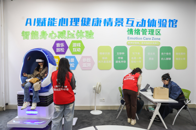 综合育人馆地处东苑10号楼南侧,共分4个主题馆:AI赋能思政引领“一站式”社区沉浸式体验馆、AI赋能情景互动心理健康体验馆、AI赋能职业生涯体验馆、数字化国防教育与安全体验馆。