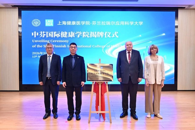 3月13日,中芬国际健康学院揭牌仪式在上海健康医学院举行。上海健康医学院校长吴韬、芬兰共和国驻沪总领事嵇安诺(Anu Vuori)、上海市教育委员会一级巡视员陈睦、芬兰拉瑞尔应用科学大学校长科斯基致辞。上海市发改委、上海市教委、拉瑞尔应用科学大学代表团及我校师生干部代表共同见证了这一历史时刻。