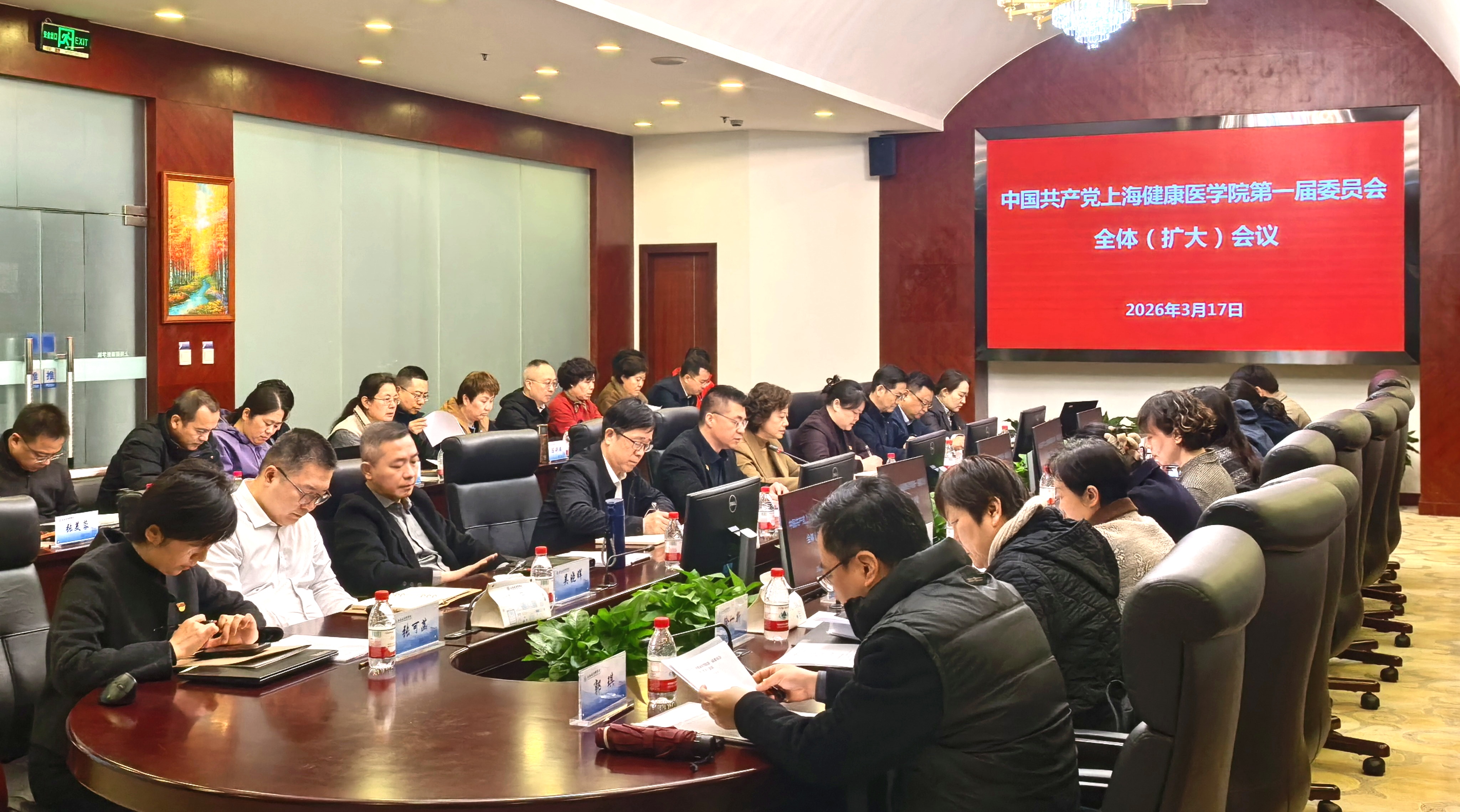 3月17日,中国共产党上海健康医学院第一届委员会全体(扩大)会议在北苑108会议室召开。全体校领导、党委委员出席会议,非党委委员的中层正职列席会议。校党委副书记、校长吴韬主持会议并讲话。