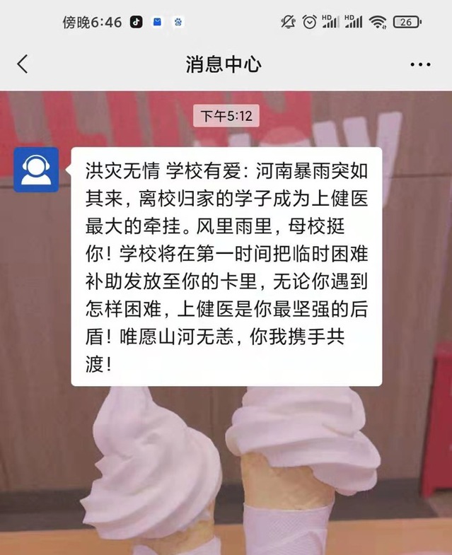 洪灾无情,学校有爱!河南暴雨突如其来,离校归家的学子成为上健医最大的牵挂。学校高度重视灾区学生家庭的受灾情况,学生处、财务处、信管中心和各二级学院快速反应、联动部署,在第一时间开展暴雨灾区学生家庭受损情况排查和资助工作,并制定了专项资助方案。