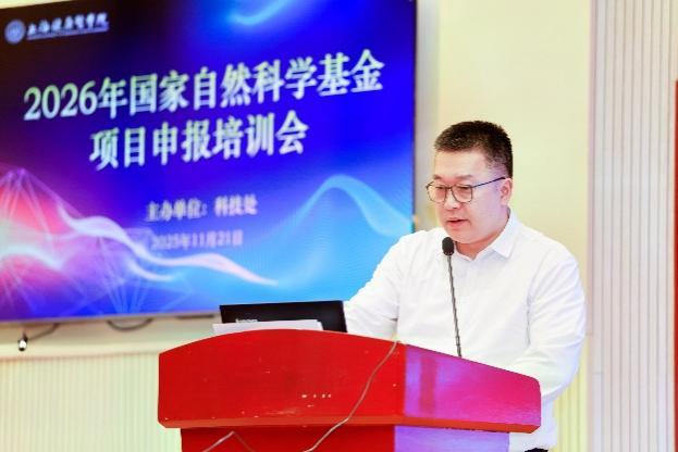 吴韬指出,科技创新是上海健康医学院“十五五”规划的核心战略支点与发展引擎,对我校实现“为科服务、为产育人”的发展目标具有不可替代的重要意义,能有效推动学校硕士学位授予单位建设以及与附属医院等行业、企业产学研医融合工作,达到“重服务,强贡献”的目标。他强调,国家自然科学基金是提升学校科研创新能级、培育高水平成果、培养科技人才的重要载体,学校将持续强化科研支持保障,优化创新服务环境,搭建更为广阔的科研创新舞台,推动学校科研事业高质量发展,为服务国家高水平科技自立自强、助力上海健康产业升级贡献更大力量。学校全体教师要以此次培训为契机,锤炼科学研究和争取资源的硬实力,在创新攻关实践中勇攀新高峰,以争先者的姿态击水中流,以担当者的自觉拼搏进取,推动学校破浪前行,在新一轮发展中勇立潮头。