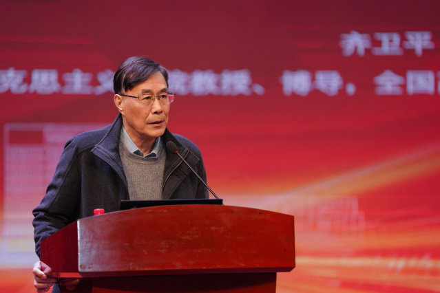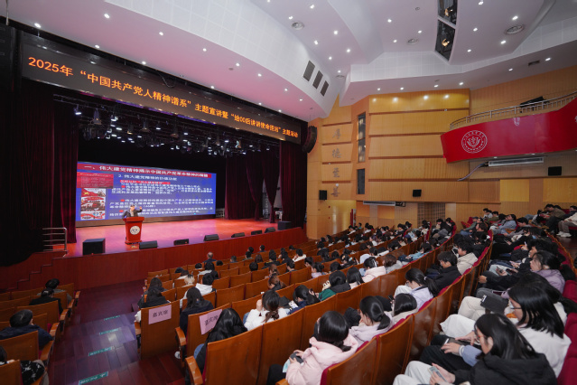 主旨宣讲环节,华东师范大学马克思主义学院教授、博士生导师、全国高校“中国共产党人精神谱系”宣讲团专家齐卫平,以《伟大建党精神:中国共产党力量之源》为题,从理论高度和历史维度系统阐释了伟大建党精神的核心要义与时代价值,为现场师生上了一堂深刻的党史学习教育课。