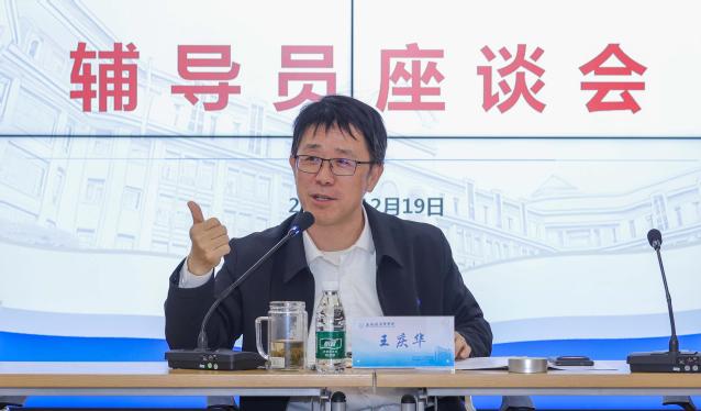 王庆华在总结讲话中,首先代表学校党委向长期坚守一线的全体辅导员致以诚挚感谢。他深情回顾了自己曾经的学生工作经历,对大家工作中的酸甜苦辣表示深切理解与共情。他指出,本次座谈反映出辅导员们的关注点已从事务应对转向对职业发展、专业突破的深度思考,这一转变正是队伍走向专业化、可持续发展的内在动力。他强调,辅导员肩负着为党育人、为国育才的光荣使命,必须进一步提高政治站位,自觉将个人工作融入服务健康中国建设和学校发展的大局之中,始终在思想上、行动上与立德树人的根本要求同心同向、同频共振。面向未来,应着力打破学院界限,围绕生涯指导、心理育人、网络思政等关键领域,组建专业化团队。通过聚焦方向、深耕细作,加强协作、共享智慧,切实推动辅导员队伍构建起“一专多能”的发展路径。学校将持续搭建平台、完善机制、提供资源,为辅导员专业成长提供坚实支撑。最后,他勉励全体辅导员,要坚守育人初心,提升格局站位;要促进个人成长与学校发展深度融合;要共同打造一支心中有爱、肩上有责、手中有术的队伍——一支拥有幸福感、凝聚战斗力、堪当时代重任的高素质辅导员团队,为培养健康事业卓越人才贡献更大力量。