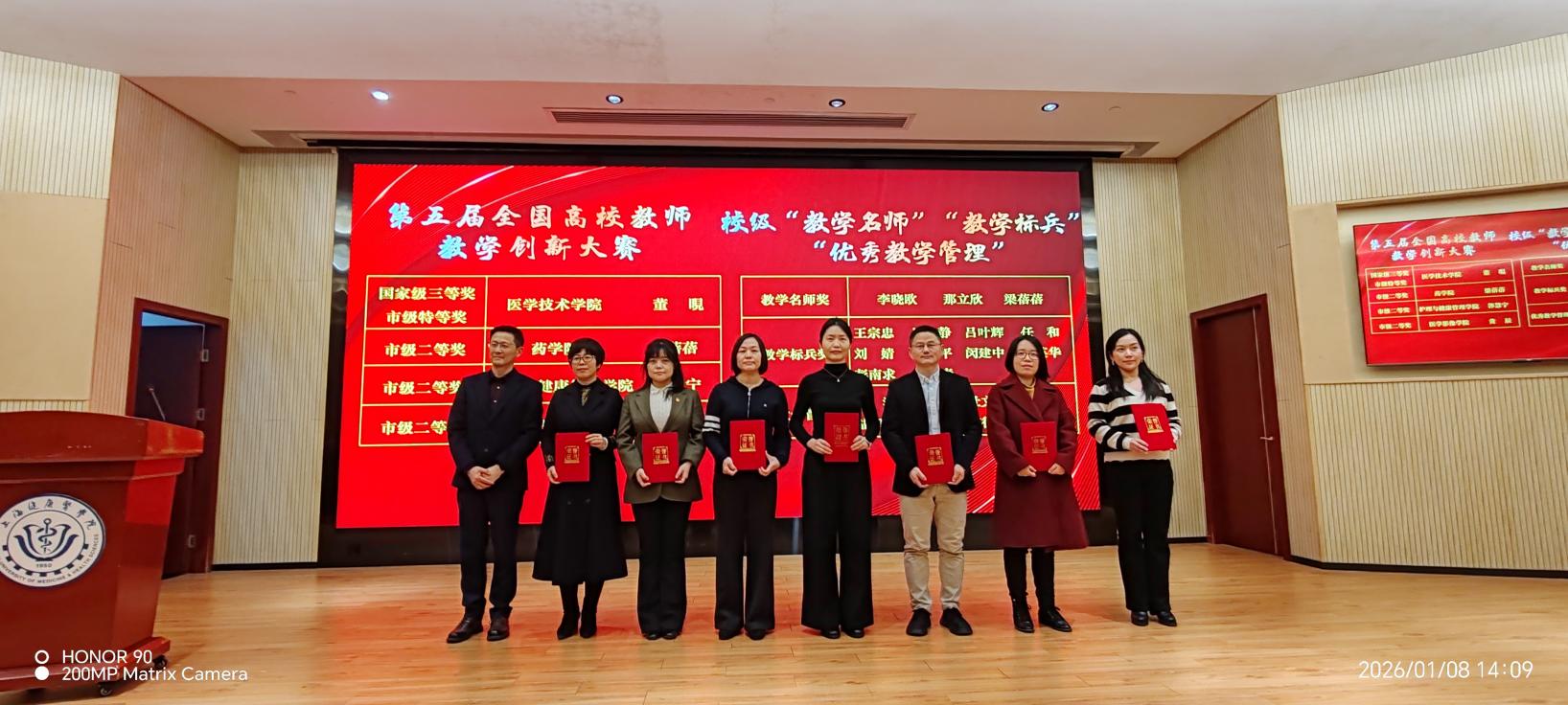 会议首先表彰了附属和教学医院教学示范科室、优秀实习带教,第五届全国高校教师教学创新大赛国家级、市级获奖教师,以及本年度“教学名师”“教学标兵”“优秀教学管理”的获奖教师代表。