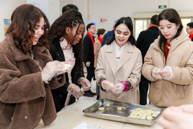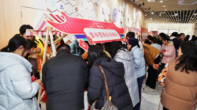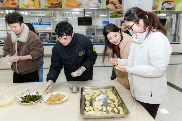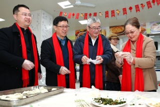 活动期间,场内文艺展演与场外年味市集双线并行、暖意交融。六大 “年味市集” 摊位同步有序开放,吸引师生踊跃参与、络绎不绝。“筋柔暖暖”舒缓身心,“翰墨香香”写福迎祥,“药香缕缕”巧制香囊,“丝丝捻捻”编出春意,“投壶铮铮”喝彩阵阵,“惊喜连连”扫码送福。陈睦、郭永瑾、吴韬、王庆华与师生们一同动手体验传统民俗,亲切交流新春期许、共话新岁。陈睦、郭永瑾和师生们共同参与“饺香聚情·岁岁团圆食光”环节,包制品尝热腾腾的饺子,在馥郁饺香与融融笑语中,感受“在校如在家”的团圆温暖,校际情谊在舌尖心头深深凝结。