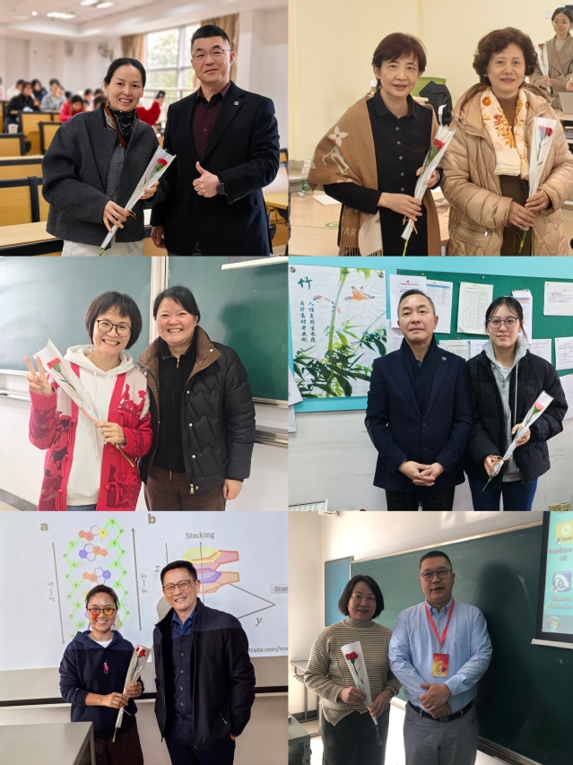 3月6日,吴韬校长带领校领导走进北苑教学楼、行政楼办公室,为在课堂一线授课的女教师及坚守工作岗位的女教职工送上鲜花和节日祝福。与此同时,工会也在南苑食堂门口设立鲜花赠送点,为过往的女教职工、女大学生们送上节日的惊喜与祝福。