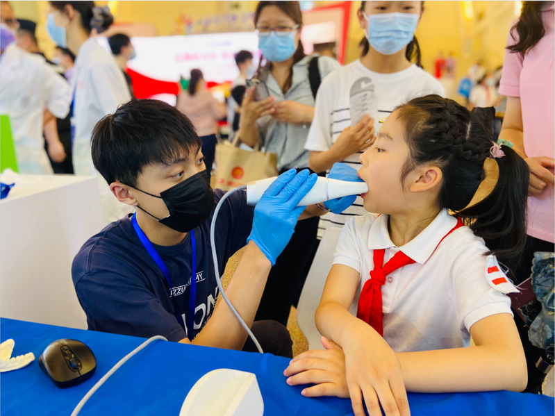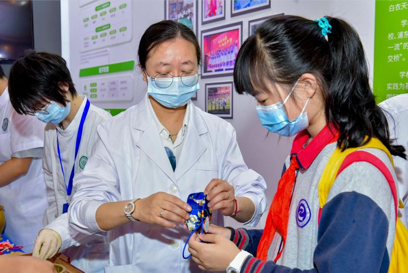 学校围绕活动主题,立足专业特色,打造内容丰富、形式新颖的展区,展示了学校发展历程、专业介绍、校园文化等,并精心打造了“徒手心肺复苏”“口腔数字化扫描”“中药香囊制作”“老年服、孕妇服体验”四个沉浸式的体验项目。在“徒手心肺复苏“展项,学生志愿者手把手地传授心跳呼吸骤停的急救方法,引来了众多观众“围观”学习。“口腔数字化扫描”展项通过专业设备仪器3D扫描成像,帮助体验者直观了解自己的牙齿状况,提升口腔卫生保健意识。在“中药香囊制作”展台,体验者亲手制作中药香囊的过程中,体会中医的博大精深和古代劳动人民的生命哲学。学生们在“老年服、孕妇服体验中感受到了母亲在孕育过程中的艰辛以及老年人生活中的种种障碍。前来观展的家长、师生们兴致盎然,在体验的过程中深刻了解医护文化,领略医护职业的魅力。参展期间,副校长徐敏来到展会现场慰问师生志愿者,感谢他们的辛勤付出。