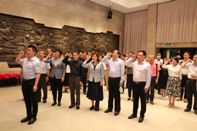 在纪念馆序厅,面对鲜红的党旗,吴韬带领大家重温入党誓词,铮铮誓言,铿锵有力,更加坚定地牢记入党时的庄严承诺和初心使命。